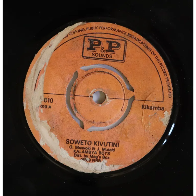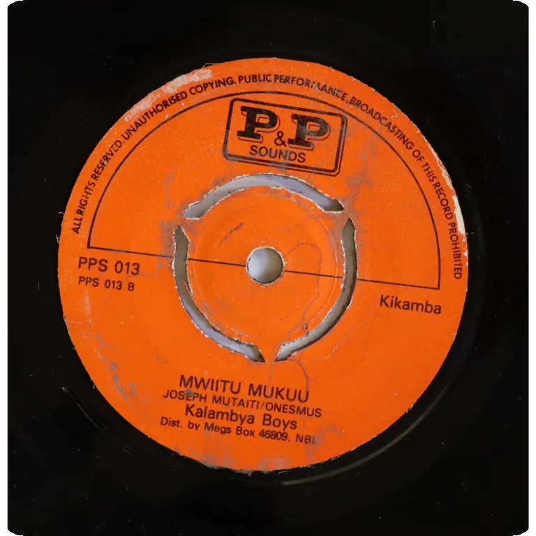 Kenyan benga rarity, including one with laid back intro on side A, both sung in kikamba language. Strong wear, fading of the colour and peel off on labels, record has light to hardly noise from marks, ranges from VG to VG++