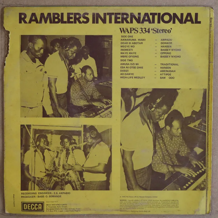 The Ramblers bring back the 60's horn led classic highlife style on this mid 70's LP by one of Ghana's legendary groups, leaving far behind most guitar led bands of the time. Some dirt wear & aging, ringwear, narrow bite on top mouth, record has very occasional light to hardly noticeable noise.