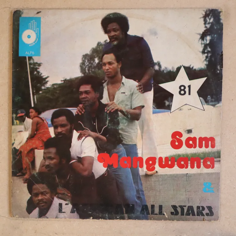 Tropical dancefloor soukous wonder lp recorded by Sam Mangwana's drummer with African all stars, Dally Kimoko, Assi Kapela, Joe Mpoyi, etc. Sleeve has aging & dirt, peel off on front, ringwear on back