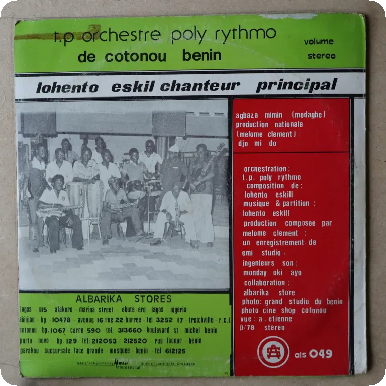 w/ the funky title "Agbaza mi min" + 2 soukous dancers. Some aging & dirt, small peel off & light brown dirt on top, plays quite nicely with only minor occasional noise from unremoveable dirt & marks