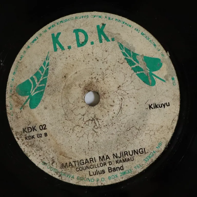 Kikuyu benga double sider by Daniel Kamau's prolific group. Some dirt on labels. Record plays VG- to VG+ w/ reasonable to hardly noticeable noise from marks.
