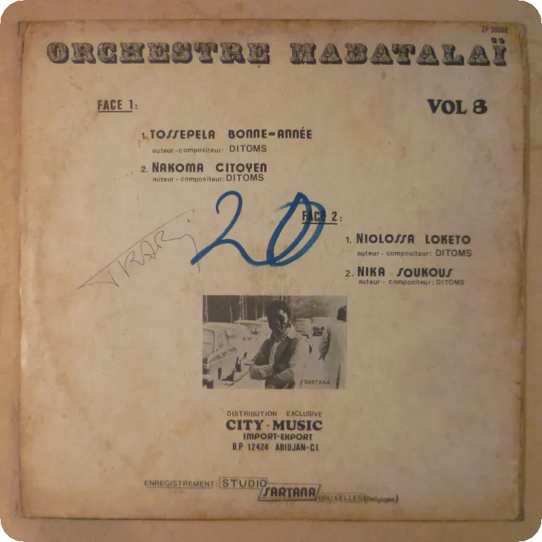 Tropical dancefloor soukous masterpiece recorded in Abidjan. Light wear on cover, narrow water damage wear along spine on back, shops ticker on front, light creases, some dirt on B side label, record