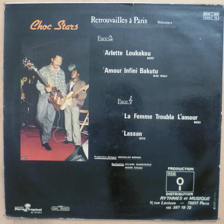 Rumpin & rollin heavy uptempo part 2 soukous winners on this Congolese music lp recorded by the Paris based band. Light brown water damage, creas & warp along mouth, light to hardly noticeable noise