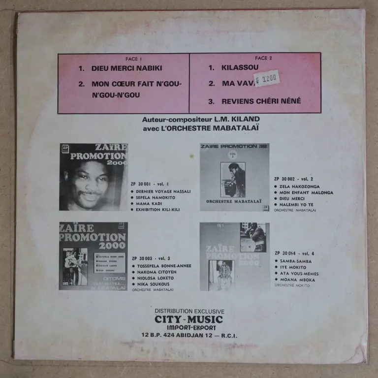 Tropical dancefloor soukous masterpiece recorded in Abidjan. Light wear on cover, narrow water damage wear along spine on back, shops ticker on front, light creases, some dirt on B side label, record in top shape with inaudible opaque pressing wear on edges, cleanest copy I've ever offered.