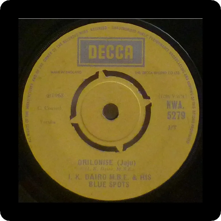 Single only mega rare deep juju release by Nigeria's 60's iconic artist. Rubber stamps & wear on labels. Reasonable to light noise from marks.