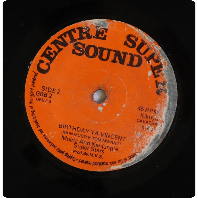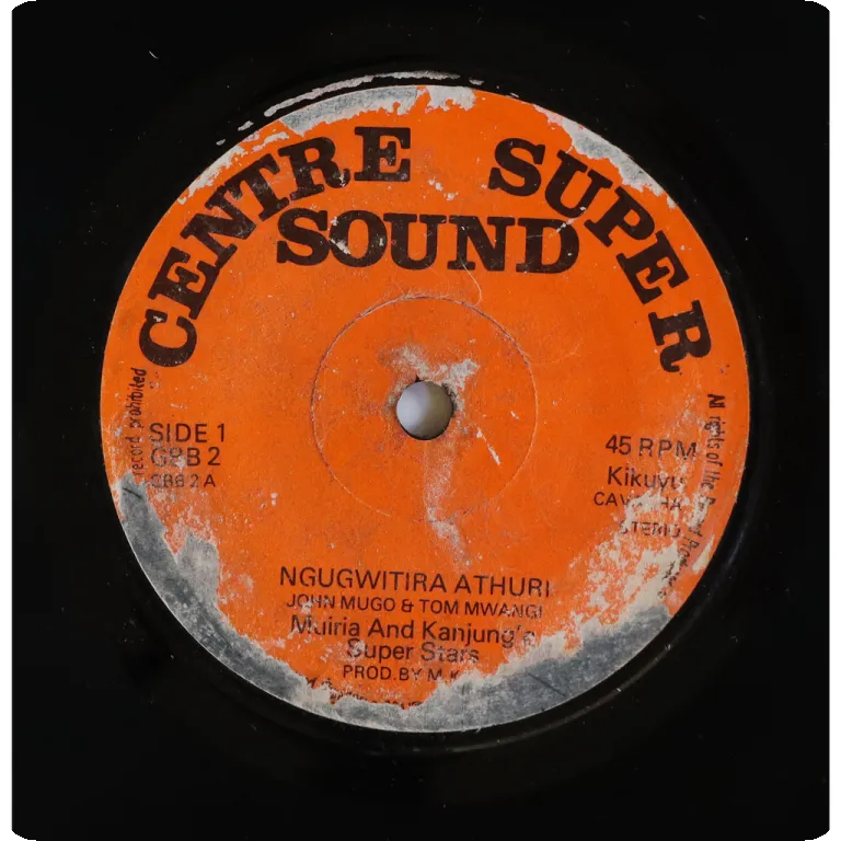 Mid tempo Kikuyu benga double sider rarity from Kenya. Dirt & peel off on labels. Record has marks & is a bit noisy in parts, occasional clicks, plays solid VG- to VG/VG+.