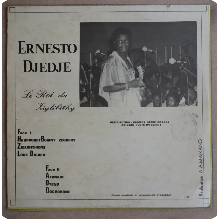 Funky Ivory Coast afro pop classic, sleeve has minor wear, shop stamps on back, writings on labels, record plays sweetly most of the tilme as its in great shape, except on edge / first 1:30 min to B