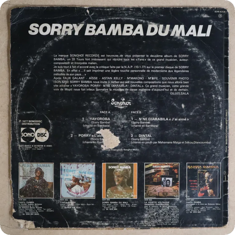 Manding psych spaciness on top on this masterpiece in top shape ! Sleeve has wear, aging, bite on bottom mouth, peel off & strong ringwear on back, writings & small peel off on labels. Record plays w/