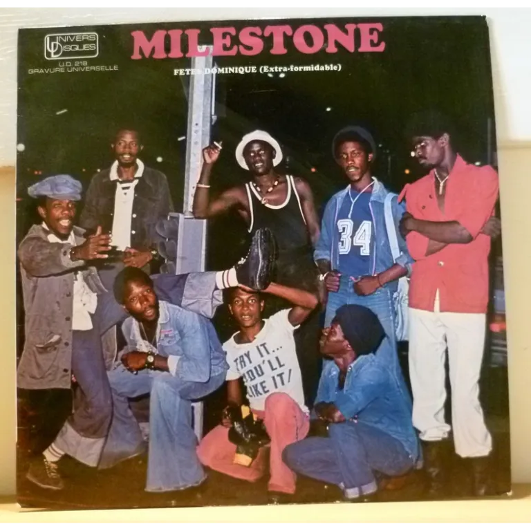 Features an island psych soul, the cadence lypso "tire l'an main'r", a roots reggae "rasta find himself", aging on cover, 3" split on bottom, writing son labels, record has light occasional noise from