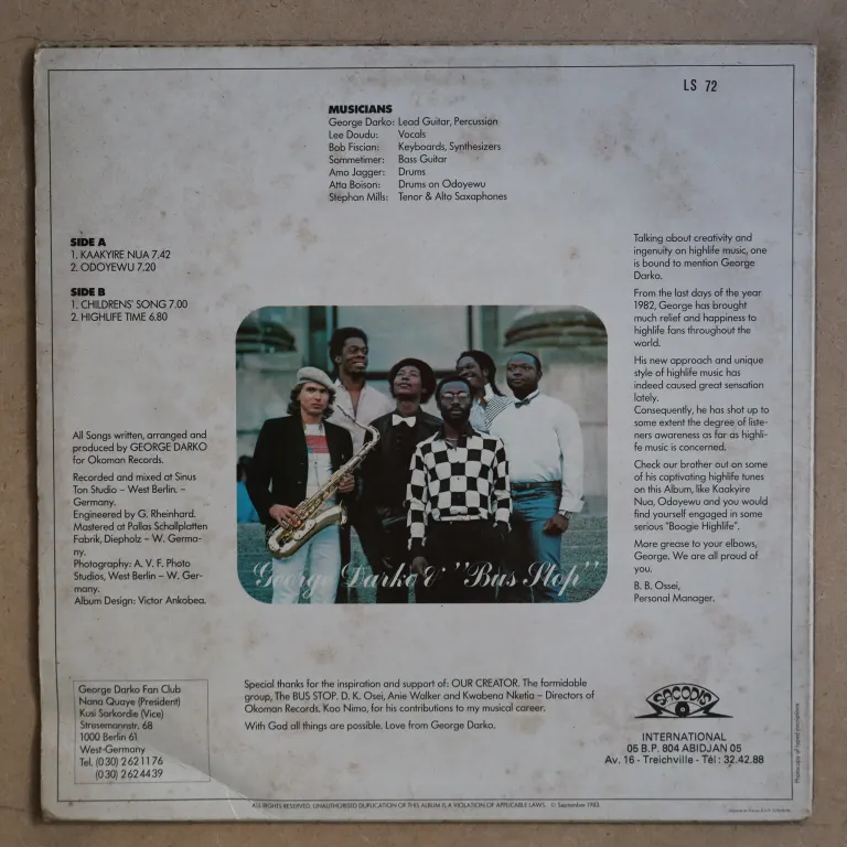 Digi highlife boogie classic released in Germany by the Ghana artist, some aging & dirt on cover, creas on bottom mouth, record has light to hardly audible opaque pressing hiss.
