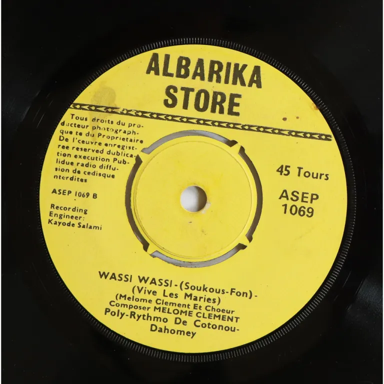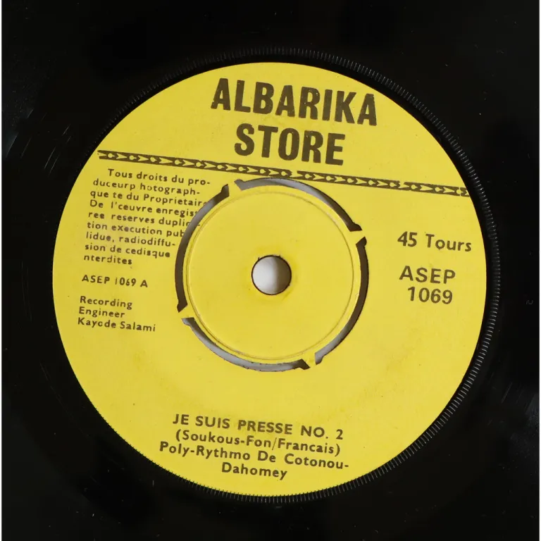 Deep hypnotic afrobeat afrofunk tune, sato style, on this much harder to find release by the kings of Benin, sleeve has aging & dirt, shop stamp & writings on back, dirt on labels, strong ringwear on