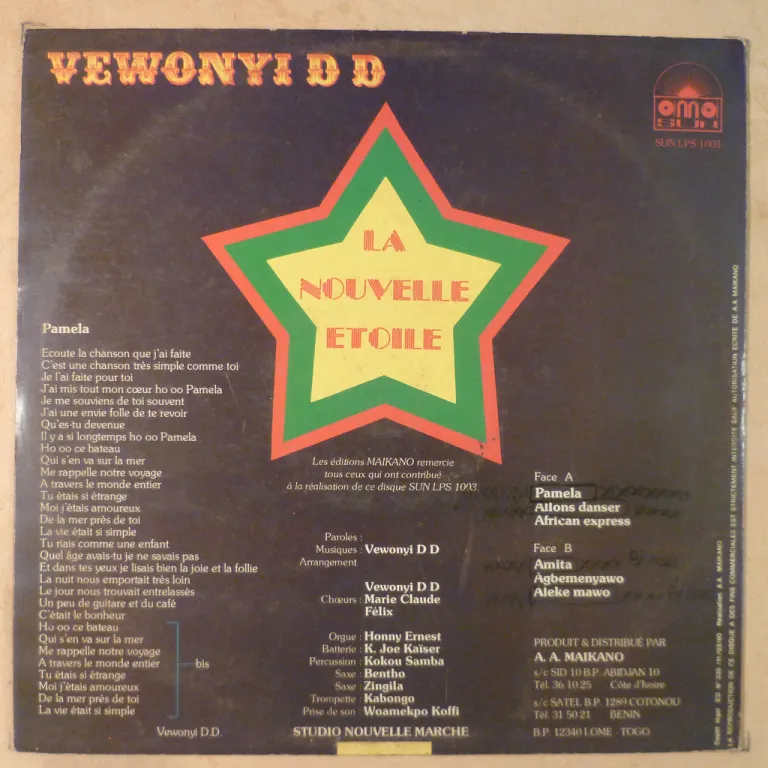 A hybrid son montuno afro pop winner & a hypnotic afro synth on this scarce off the radar Ivory Coast release arranged by Togo artist Vewonyi. Sleeve has aging/dirt, fading of the colour on front