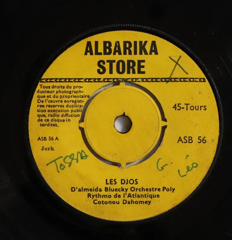 Indemand afro funk psychedelia from Benin sung in French, dirt & writings on labels, constant strong noise from marks