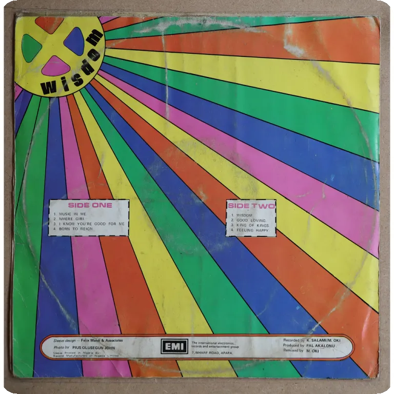 Afro psych / funky jerk w/ solid guitar solo recorded in Congo, sleeve has aging & dirt, 1,5" split on spine, light noise from marks up to no noise on the funk tune, the rumba track plays a bit worse, VG- w/ constant reasonable noise