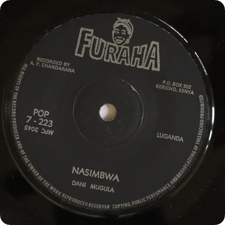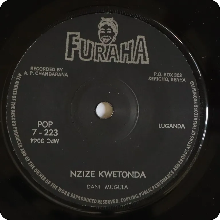 A mellow afro soul and a country music tune by the Cameroon artist, both arranged by Paris based Cuban flute master Gonzalo Fernandez. Record has constant reasonable noise from numerous marks, clicks for 30 seonds at the end of B side's country track from mark.