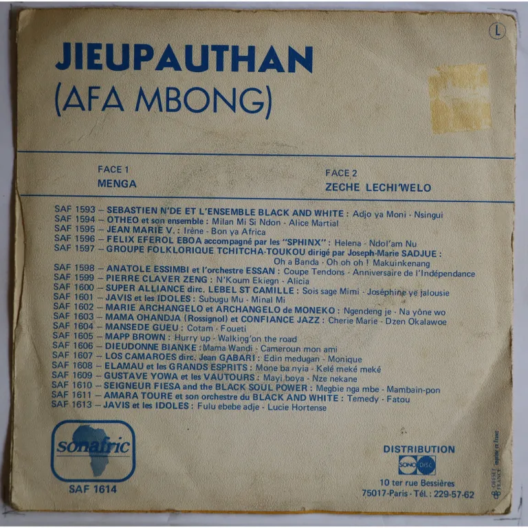 Deep & messy afro psych funky soul rarity out of Cameroon, never shows up ! Sleeve has some aging & dirt, creases, glue residue on back. The standout tune plays very nicely with very minor noise only from marks, B side's afro pop has light to hardly noticeable noise.