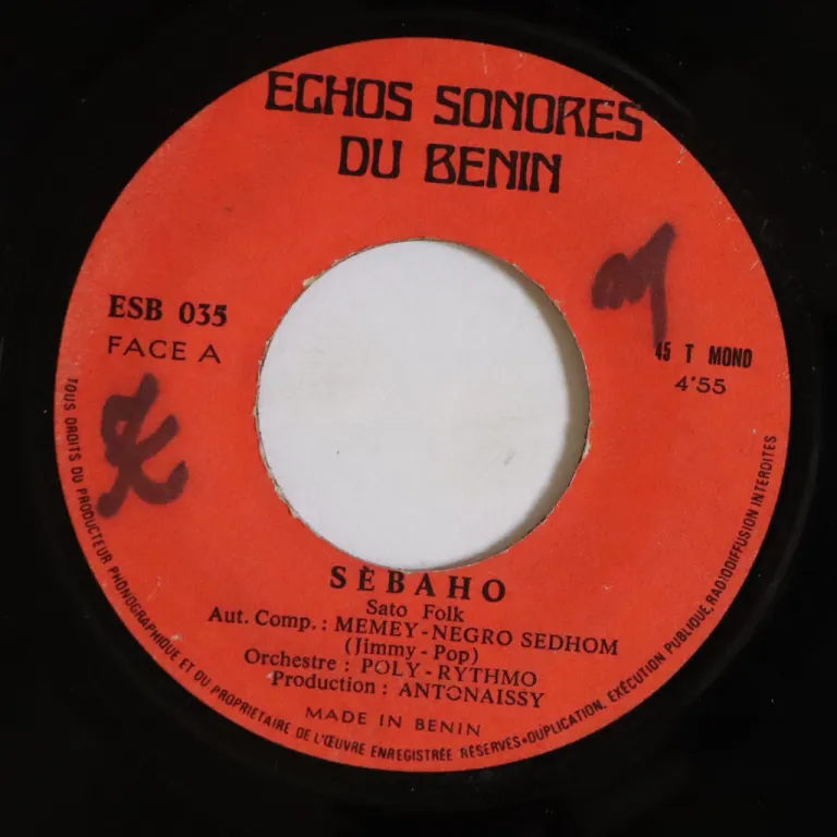Deep laid back hypnotic sato / afrobeat tune w/ organ solo by the Kings of Benin, aging & wear on cover, multiple small peel off, writings on back & labels, record has very reasonable to very light