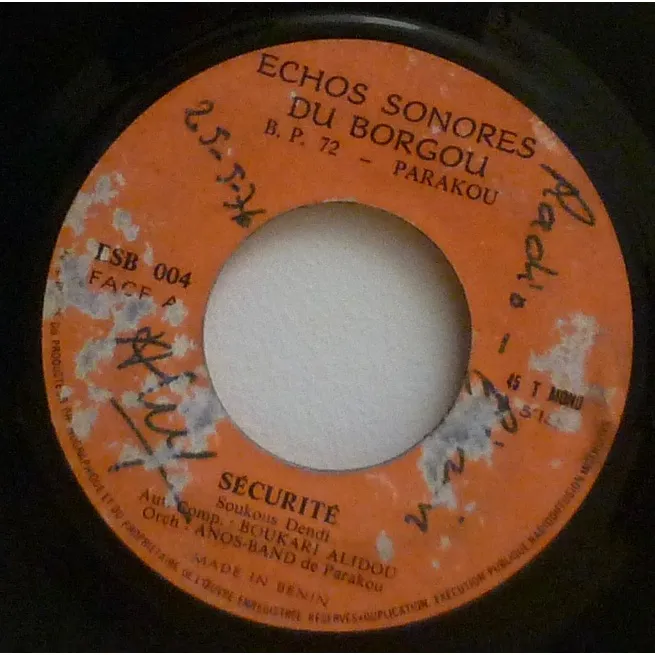 Killer hypnotic afro double sider feat. Sagbohan Danialou on lead vocals on B side and very likely young Stanislas Tohon on A side. Writings on labels, record has constant noise & pops from numerous