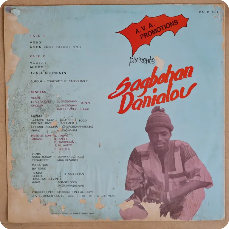 Check the melancholic afro fusion winner "djessou" on this classic LP by the Benin superstar w/ predominant percussion work, fender rhodes, also a latin tune "Africana" w/ part 3 with kickin montuno & afro pop tracks. Sleeve has some wear, small pel off on front, writings, dirt & shop stamp on labels, record plays w/ constant strong opaque pressing hiss