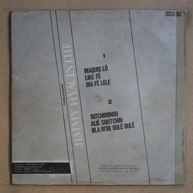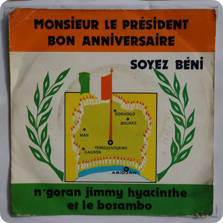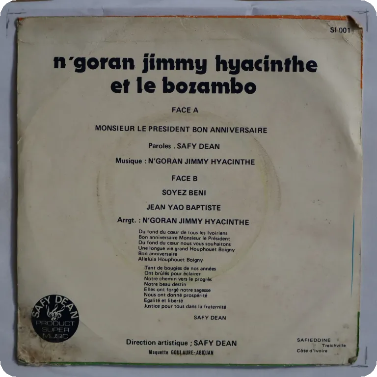 Modern afro soul & disco synth single only release by the Ivory Coast funky band in tribute to the late Ivory Coast President. Sleeve has some dirt & aging, creases, wrtings on front, record has very