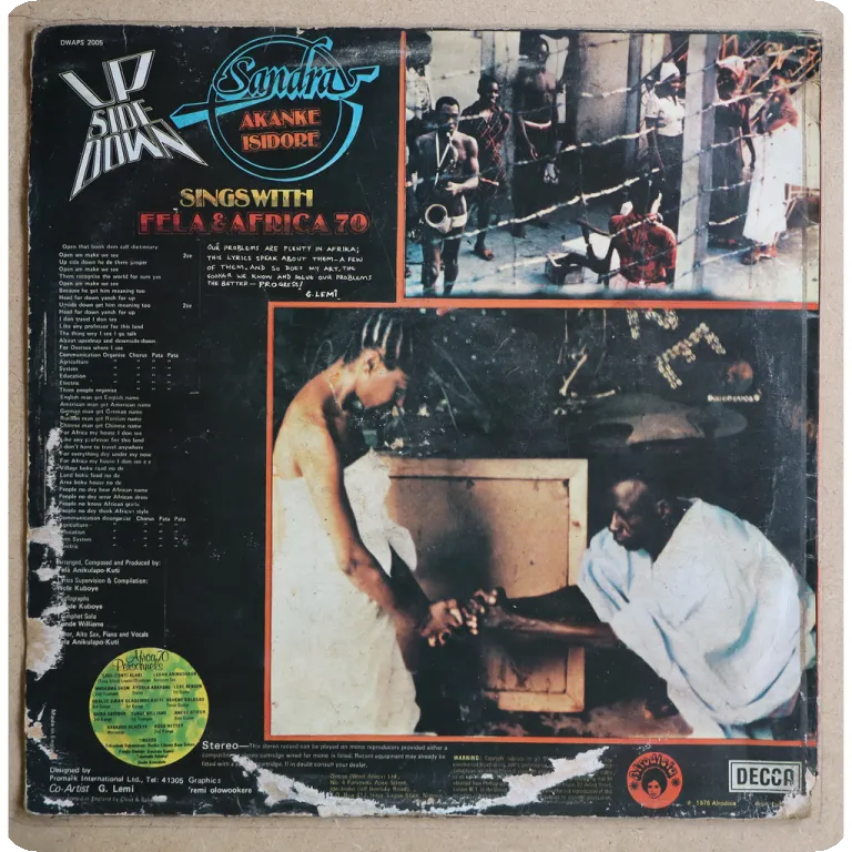 Another amazing afrobeat lp by the Nigerian sax player. Sleeve has creases, dirt & aging, writings on B label, record plays very nicely with minimal very occasional noise only despite some opaque pressing patches, cleanest copy in ages