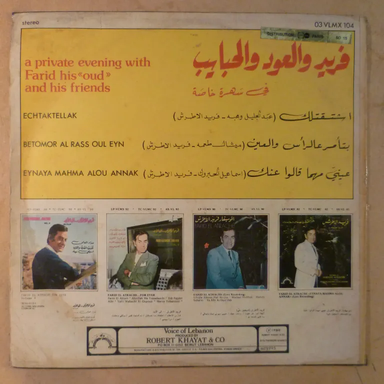 Live recording with small band by the Syrian oud master, tear & small hole on bottom mouth, bump on spine, overall reasonable wear on cover, record has reasonable to hardly noticeable noise but multiple clicks on A side intro (clip 1)