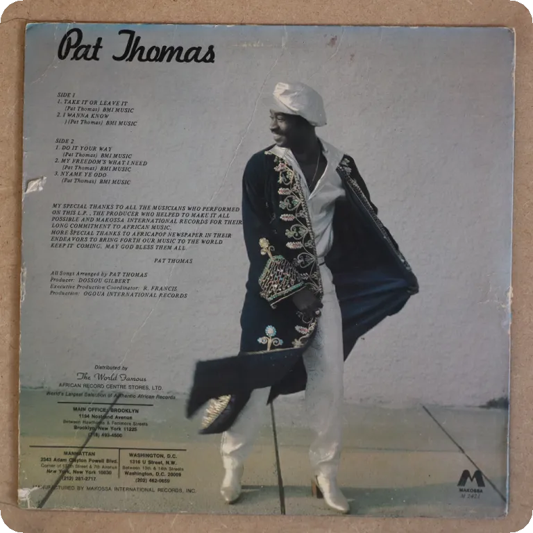 Killer Nigerian highlife by the Yoruba multidisciplinary genius. Wear & dirt on cover, discolouration along spine on front, bumps & small peel off along mouth, creases. Record plays nicely VG to VG+