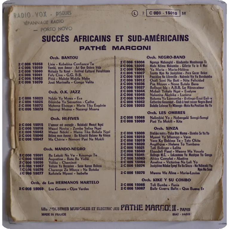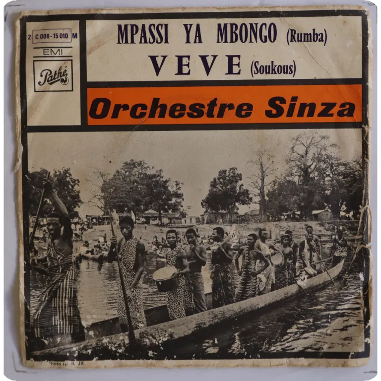 Raw rocky rumba double sider by the Brazaville band, sleeve has aging & dirt, small tears on mouth, 5" split on spine, creases, shop stamp & ringwear on back, record has light to hardly noticeable