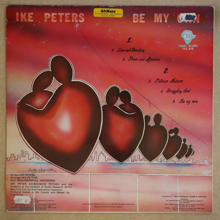 Nigerian boogie disco/modern soul on the cheesy side of things, sleeve has aging & dirt, small writings on back & labels, record plays well despite numerous thin marks
