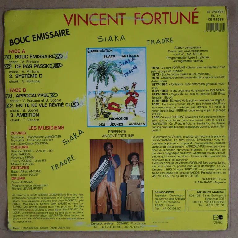 Uptempo merengues & dancefloor cadence as recorded by the Paris based French Martinique island musician. Writings on bottom back. .