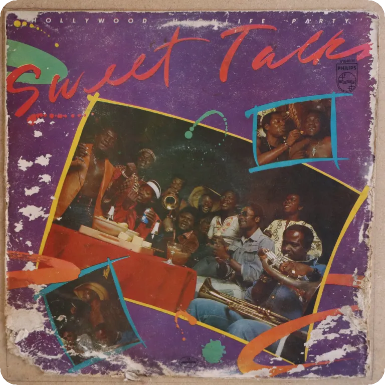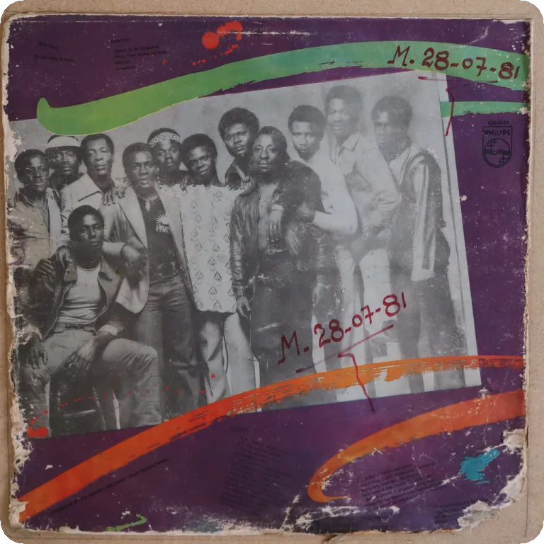 Indemand tropical dancefloor, soukous influenced hybrid highlife, LP. Sleeve has strong aging/wear, peel off & large writings, bites on bottom mouth & spine, 6" split on spine & bottom seam, mini peel