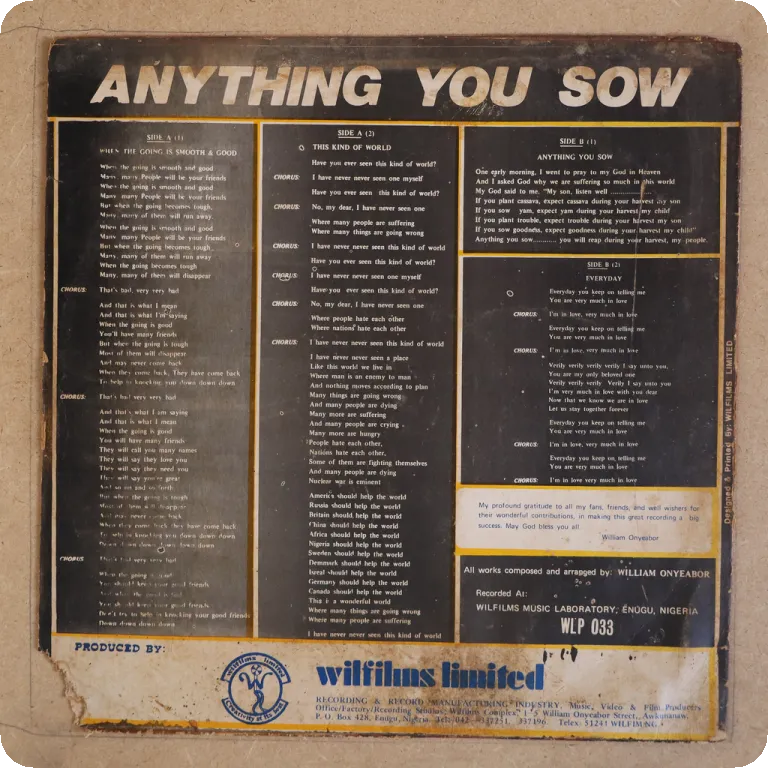 LP | Cover / Rec > > VG- / NA | Wilfilms records | Nigeria