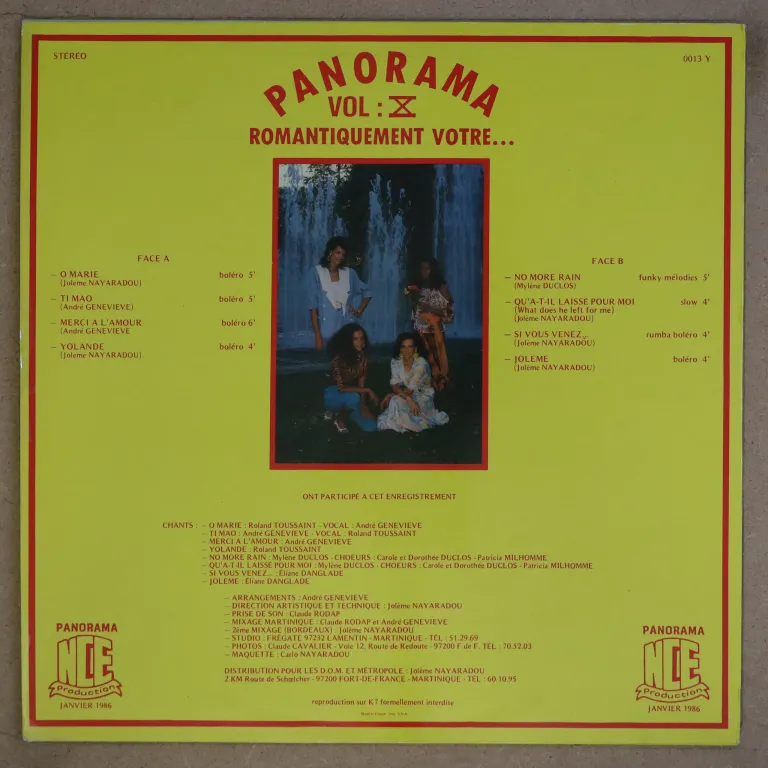Mid tempo dancefloor cadence/compas winners and a biguine tune on this LP by the Martinique artist backed by both Caribbean & French artists and even Manou Lima on piano. Peel off on front, rubb