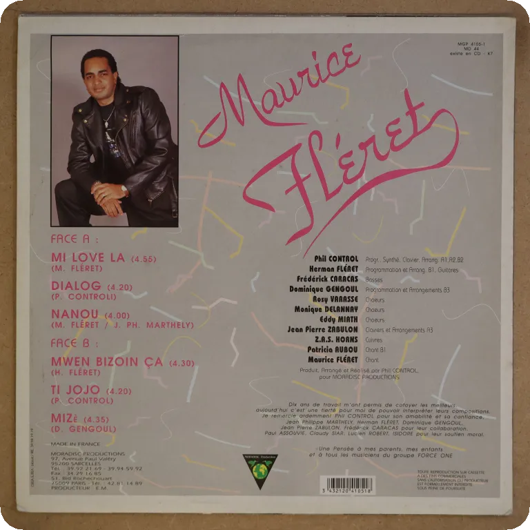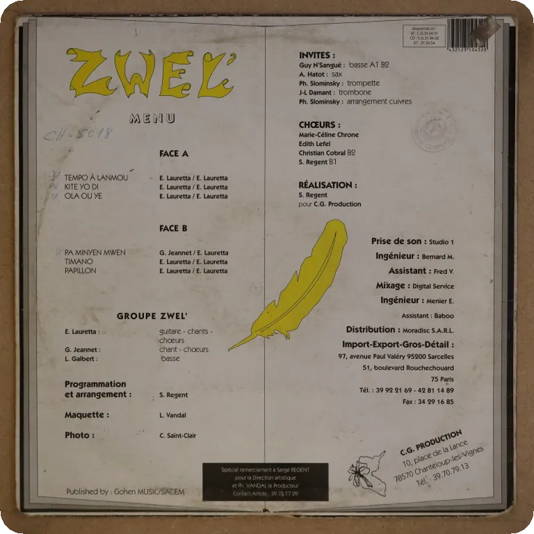 Timothey Herelle leads this zouk LP that also features such French Caribbean cats as Frederic Caracas & Patrick Parole. Sleeve has some wear, writings on front, plays with light to hardly noticeable noise from numerous surface marks.