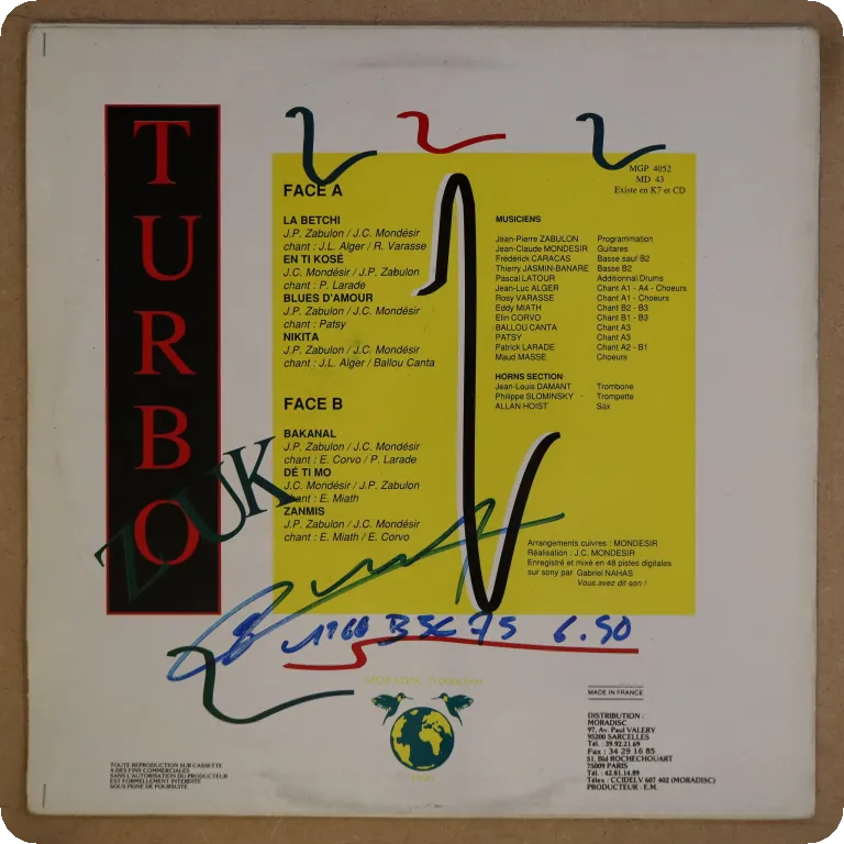 Zouk love, dancehall influenced zouk & straight zouk recorded in Paris by those French Caribbean artists. Sleeve has some light wear, writings & glue residue on back, writings on A label, record has
