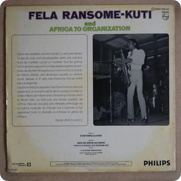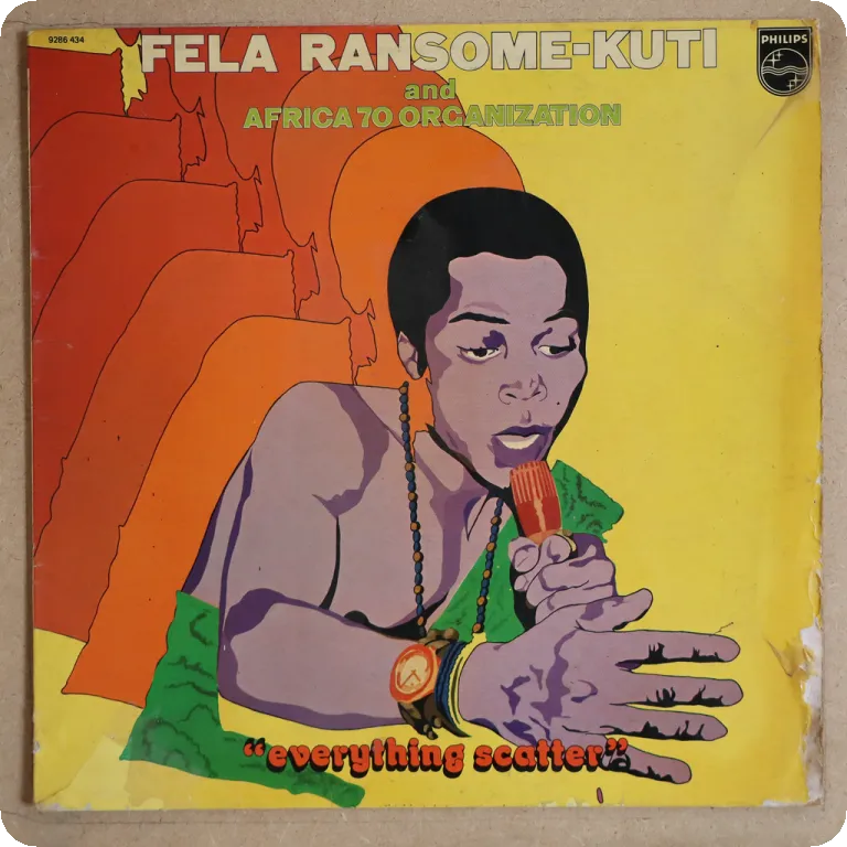 Fela on top again ! Scarce French press w/ alternate cover. dirt wear & aging, peel off along bottom mouth, record plays w/ light to hardly any noise from marks depending on part, ranges from very