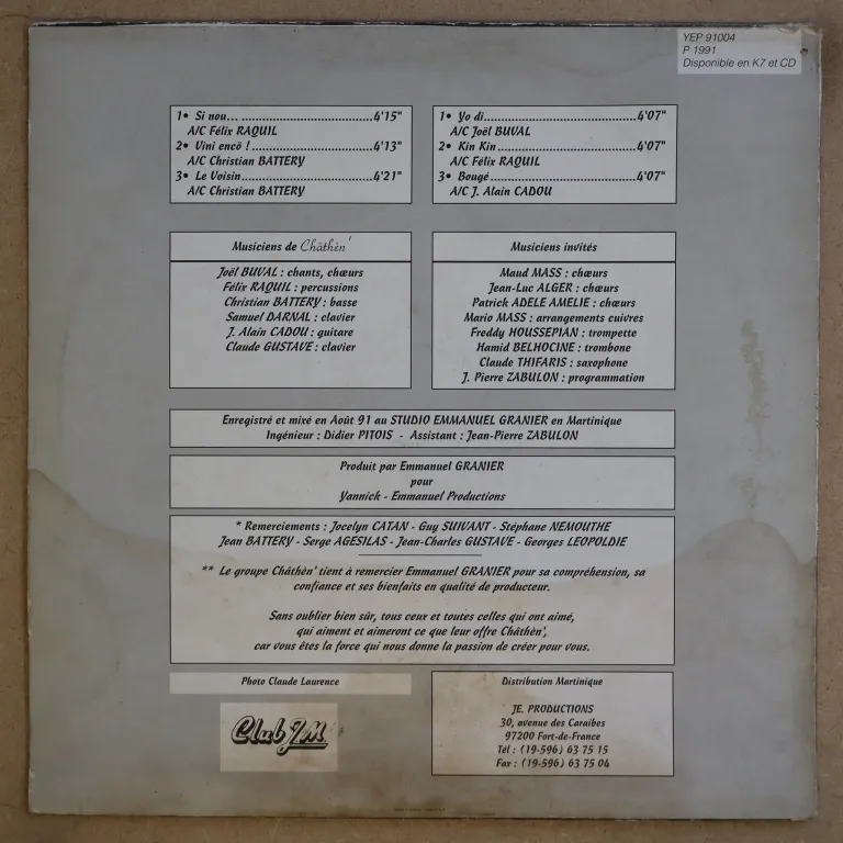 Synth zouk & zouk love winner + a downtempo salsa winner on this private Guadeloupe production. Small writings on back, plays w/ minor occasional super light noise from thin marks.