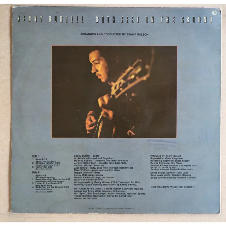 Kenny Burrell gets funky on this fusion LP feat. Brazilian Moacir Santos on percussions. Check the cover to his all times classic "Nana" among other greats. Sleeve has light wear and dirt, minor dirt on labels, record has reasonable to hardly noticeable noise depending on parts, ranges from VG- to VG+.