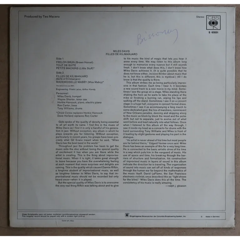 Spiritual / modal fusion masterpiece w/ Shorter, Hancock, Ron Carter, Tony Williams, Chick Corea & Dave Holland. Liht wear & dirt, writings on back, record has very reasonable to hardly noticeable noise, ranges from solid VG- to VG+, light clicks on Tout de suite for a short while, still an enjoyable shiny copy.