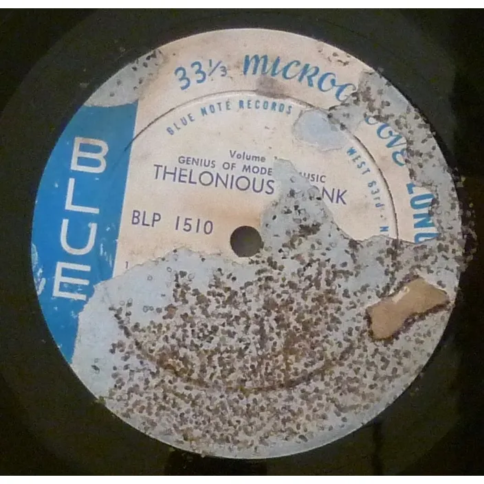Modal jazz early release by the pianist, first mono plastylite Van Gelder New York USA no deep groove original press, sleeve is seriously damaged with large bite on bottom, large peel off & paper