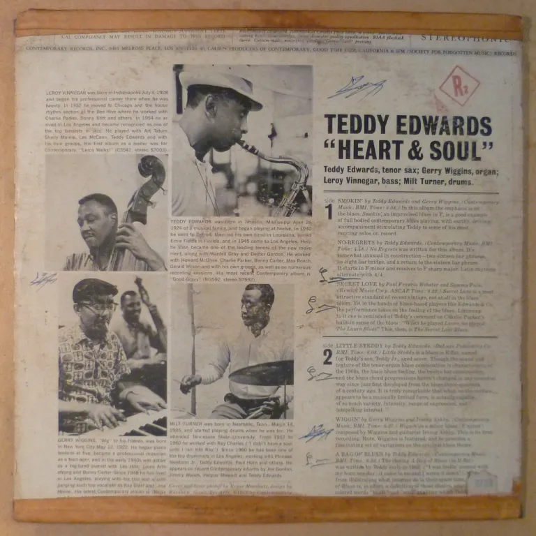 Soul jazz & bluesy jazz West Coast recordings by the sax & organ players, dar blue silver letters mid 60's repress, sleeve has some aging & dirt, writings on back, record has reasonable to hardly