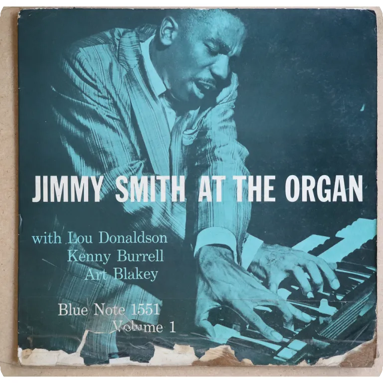 Soul jazz organ winners w/ Jerry Bird on guitar, Billy James on drums. Sleeve has some aging/dirt, beige water damage & ringwear on back, small tears on mouth, record has reasonable to very light