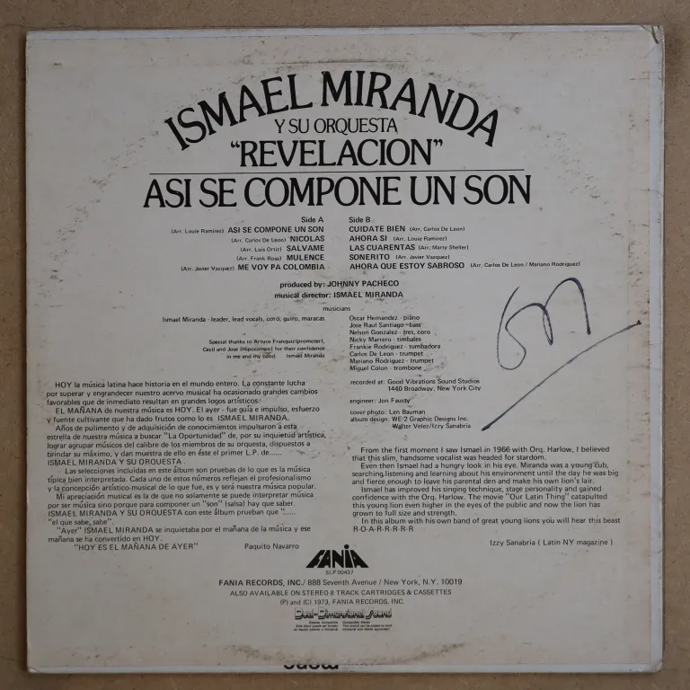 Some salsa dancers on this solid latin LP by one of Fania's leading figures. Minor wear on cover, large writing on back though, record has hardly audible visible marks, plays greatly.