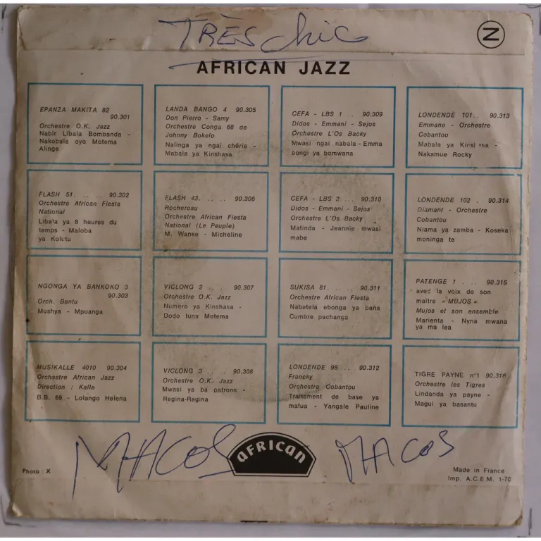 Check the super deep tshiluba folklore w/ long flute solo on side A. B side is a straighter rumba, w/ guitar virtuoso soloing.Scarce OG French press of one of my favorite African fiesta/Docteur Nico