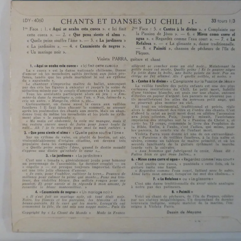 Mini LP on 7" format apparently recorded in France by the Chilian legend. Minor dirt on cover, record in top shape.