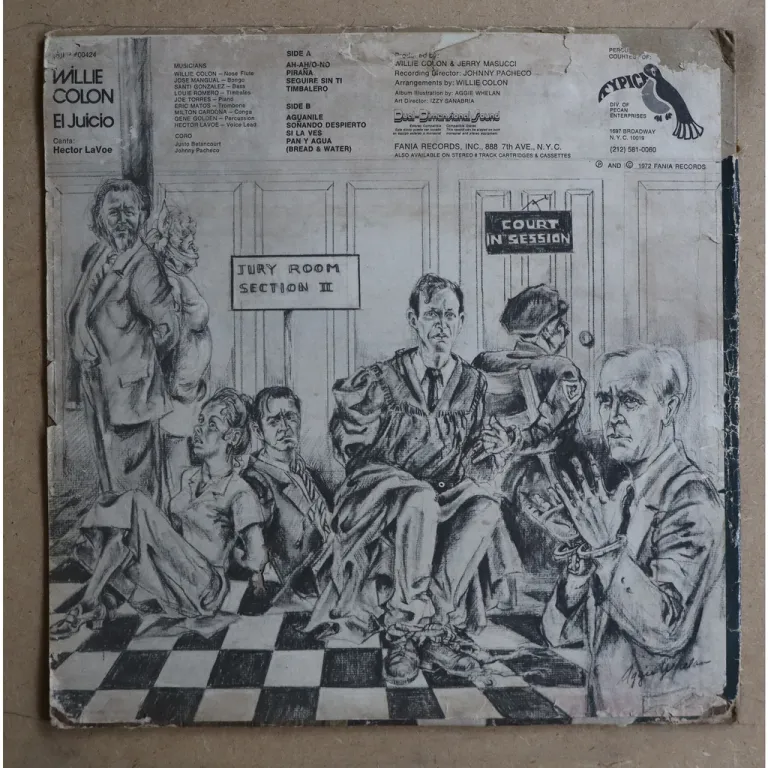 With the killer dancefloor descargas "timbalero" & "aguanile" and multiple excellent salsa & latin music tracks. Sleeve has aging & dirt, peel off, crackling from water damage, 5" split on top & bottom, stickers on labels. Record has light occasional to hardly any noise, very clean.