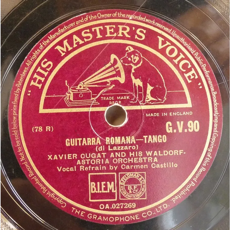 A bolero and a tango as released for the legendary HMV sublabel. Record is V- w/ light marks & dirt residues & constant reasonable surface noise.