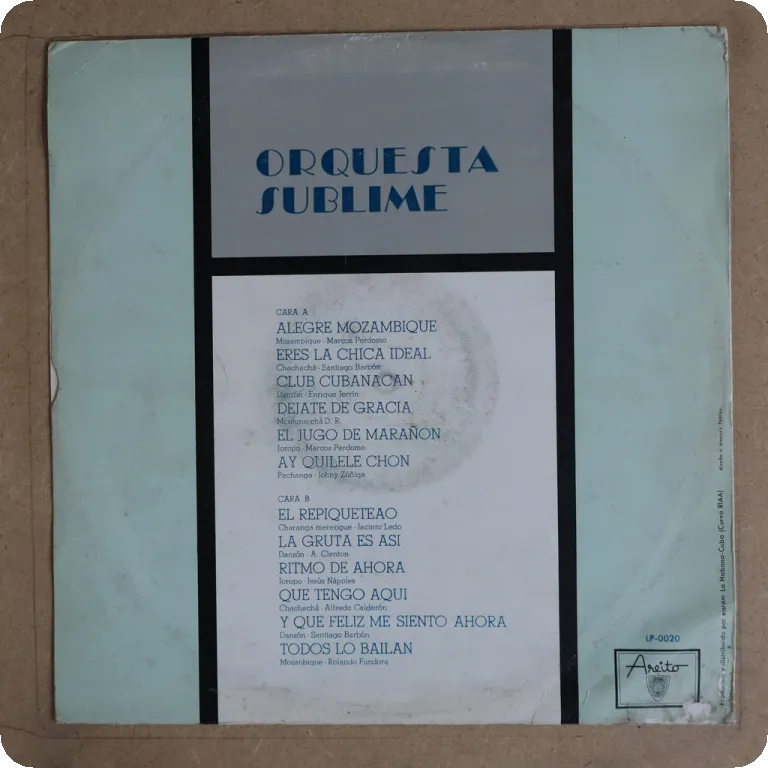 Pachanga, mozambique, charanga, chachacha & danzon by one of Cuba's leading groups on this scarce repress or Egrem LD 3217 specially printed for the African market as Areito LP 0020. Sleeve has aging