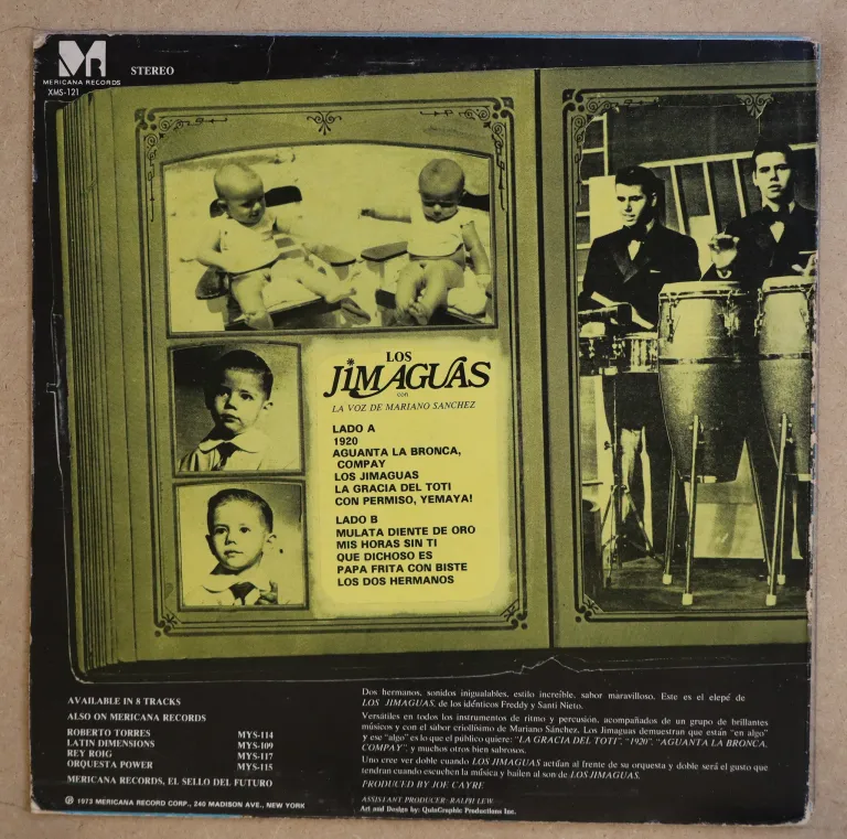 Consistent salsa LP recorded by the 2 brothers. Light wear on cover, some peel off on spine & dirt on bottom front, vinyl plays w/ light to hardly noticeable and is in great shape, ranges from VG to EX.
