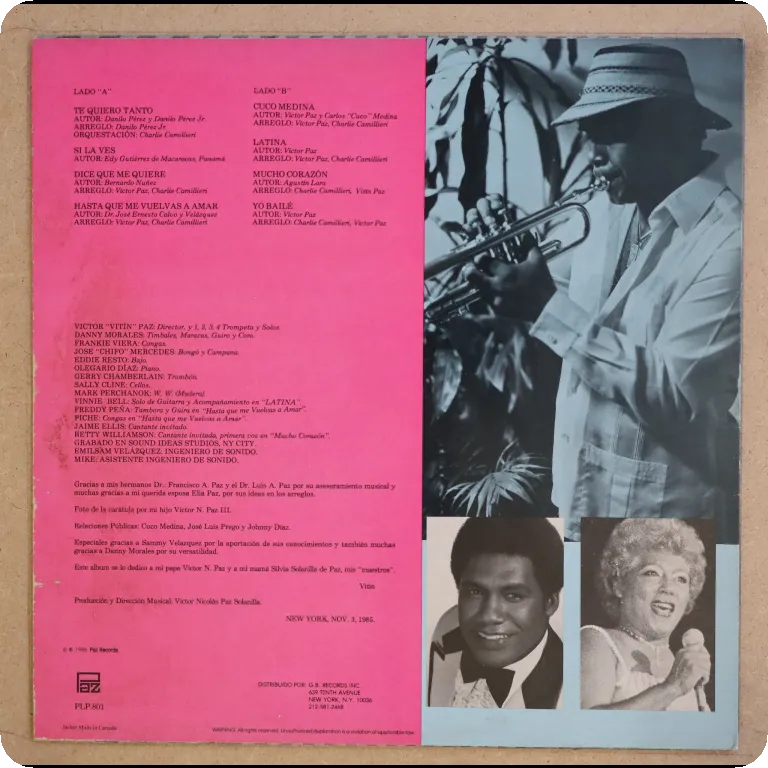 Consistent salsa LP on a tough to find label. SAging/wear, split on all top & spine, peel off on front, rubber stamp & writings on back & labels, record plays w/ light occasional noise.